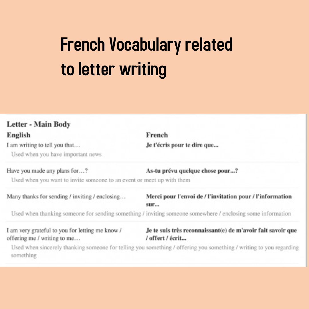 French Grammar & Vocabulary, French Writing Practice & Grammar, Learn French, TEF & DELF PreparationFrench Vocabulary related to letter writing December 3, 2019June 26, 2025 Swati Rastogi Share this: Click to share on Facebook (Opens in new window) Facebook Click to share on Pinterest (Opens in new window) Pinterest Click to share on X (Opens in new window) X Related Published by Swati Rastogi online French teacher|online course developer|French translator|Education influencer View all posts by Swati Rastogi