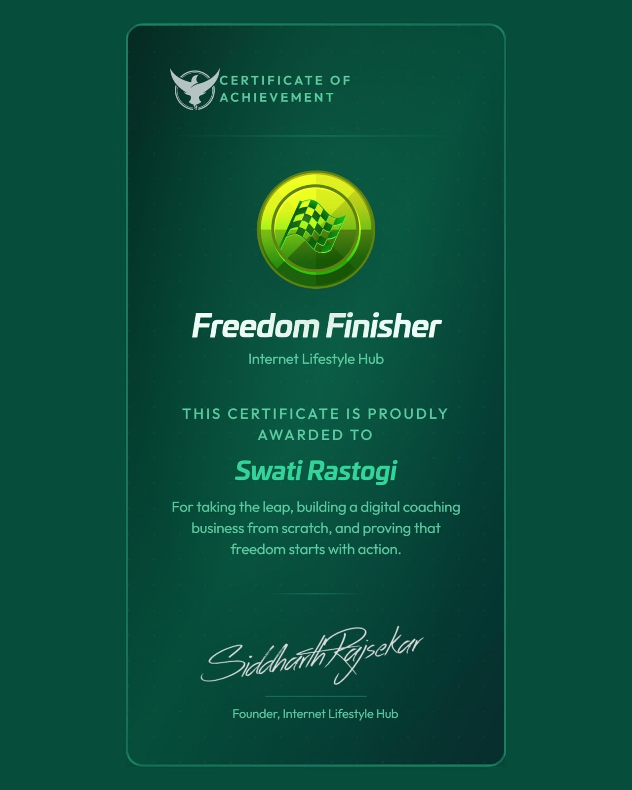 Recognized as a Freedom finisher under the mentorship of Siddharth Rajsekar